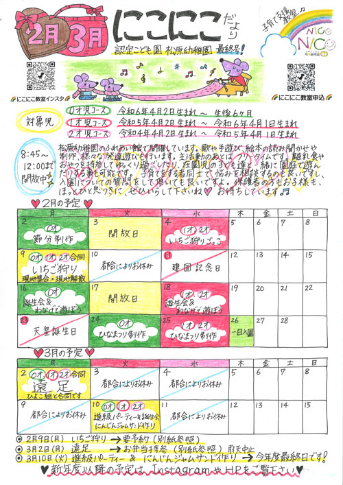 2・3月にこにこだよりがダウンロードできます(PDF)